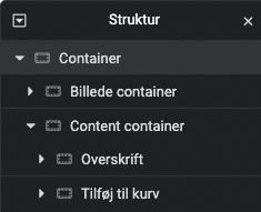 Herefter skal opbygningen i loopet være lavet til denne funktionen. Du skal derfor sikre dig at billede og content er i hver sin container. Herefter skal indholdet under billedet også være opdelt i to containere, se mit eksempel herunder: